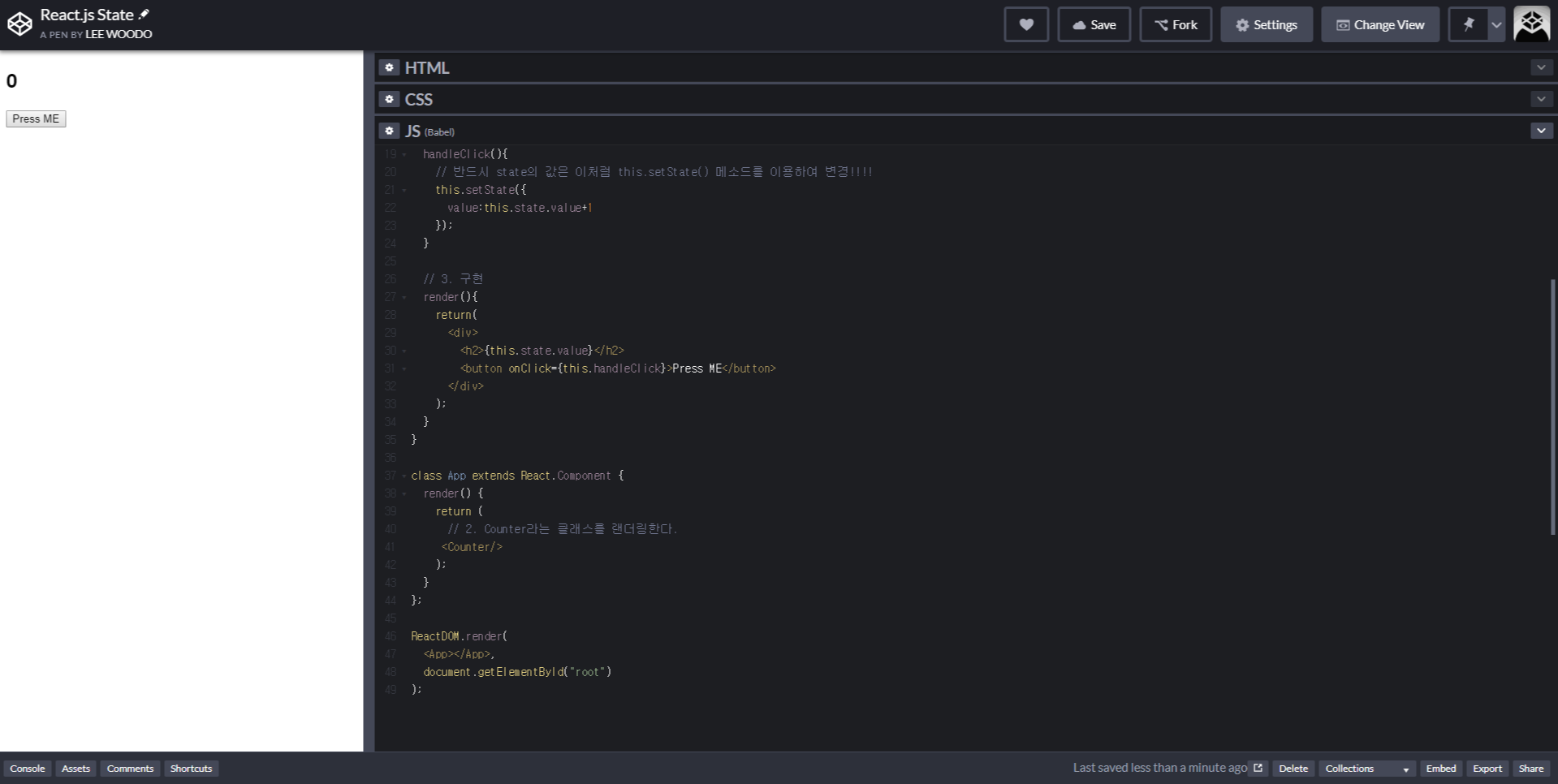 3. Press ME 버튼을 클릭하면 카운트가 올라가는 것을 확인 할 수 있다!