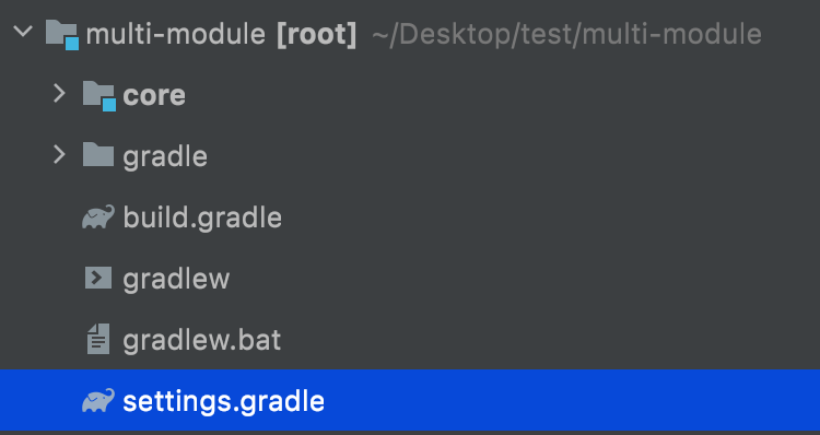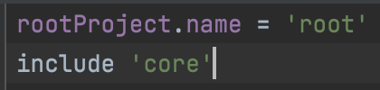이제 settings.gradle을 보면 다음과 같이 방금 생성한 core가 include 된것을 확인할 수 있다. 이것은 하위 모듈로 선언한다는 의미이다.