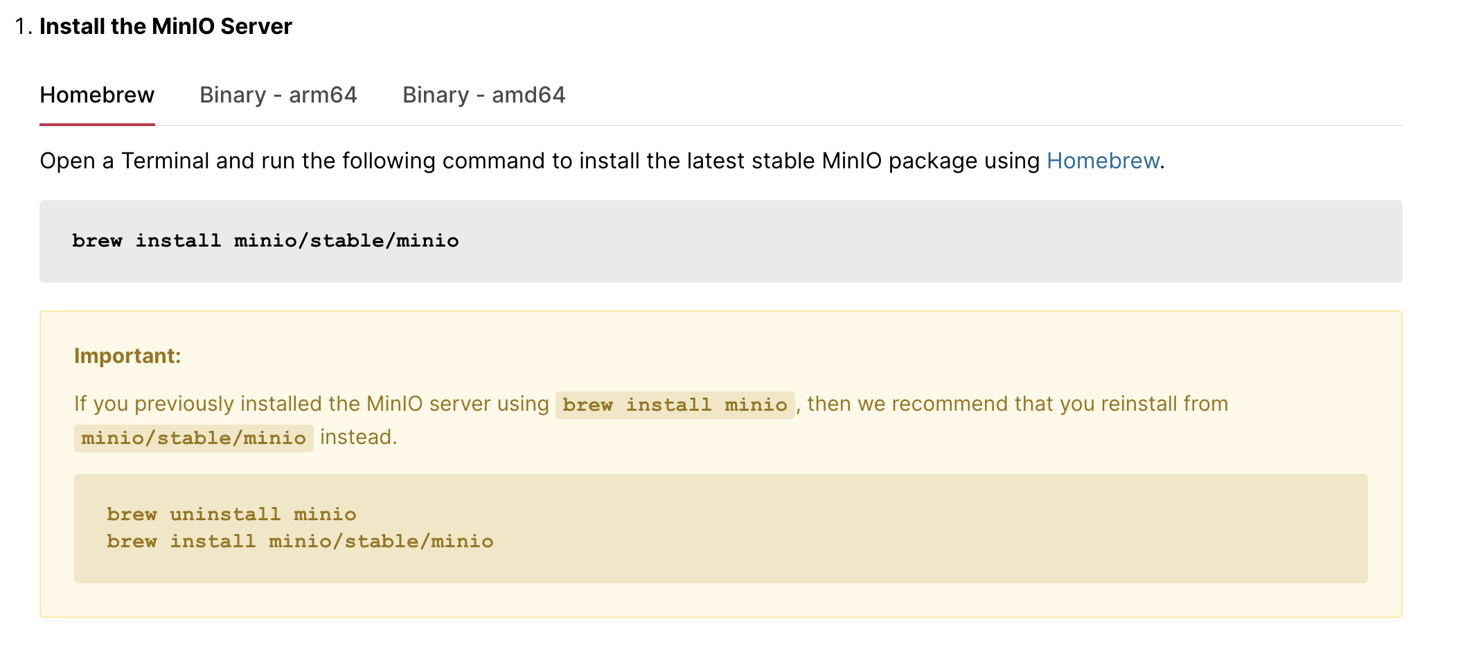 $ brew install minio/stable/minio